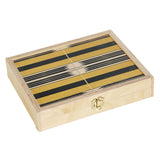 this custom printed set closes up neatly for easy travel- perfect for picnics, weekend getaways or evenings by the fire. each kit includes two sets of checkers and two sets of dice. brass hardware add to the luxe feel of this truly heirloom item.