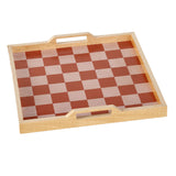 checker serving tray game set - brown / mauve