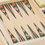 this custom printed set closes up neatly for easy travel- perfect for picnics, weekend getaways or evenings by the fire. each kit includes two sets of checkers and two sets of dice. brass hardware add to the luxe feel of this truly heirloom item.